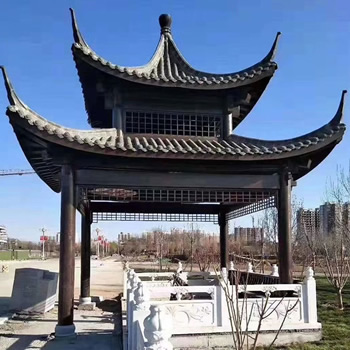 雙層四角涼亭采用實木制作,外觀簡單大方,廠家直銷、承接工程、支持定制、上門安裝。